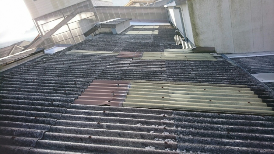 土岐市の工場で大波スレートが雨漏りしたので部分取替工事