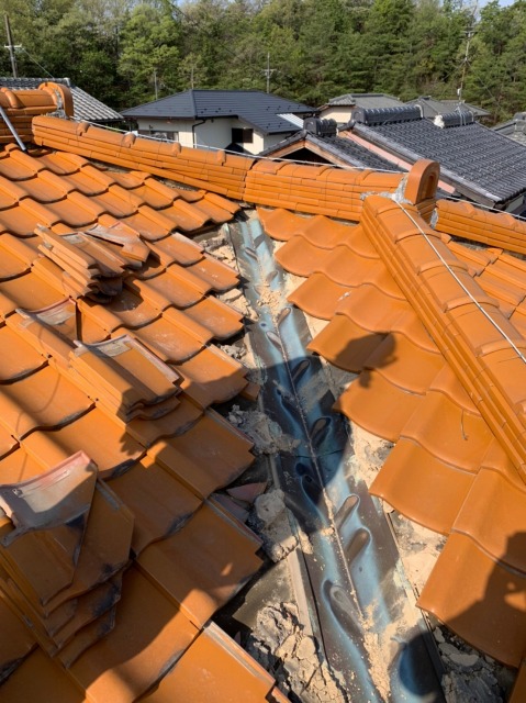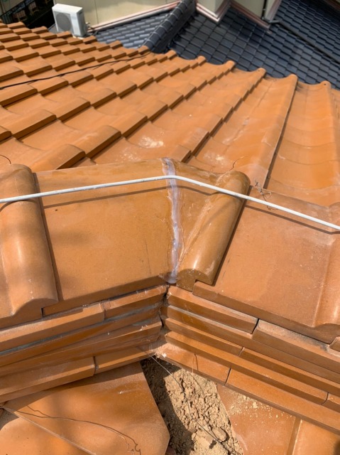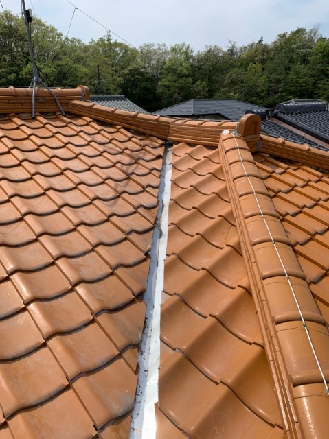 ホーム > 多治見市の瓦屋根の棟瓦と谷板金の修繕工事をしてきました