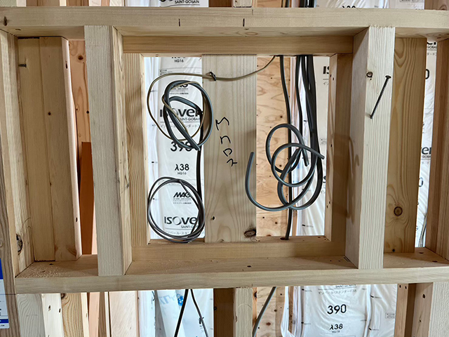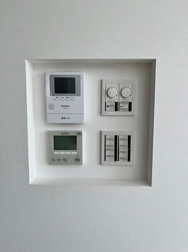 こちらがコントローラーです。今回は壁に直接据え付けるために、あらかじめ配線工事を施して通信ケーブルを通しています。