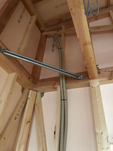 住宅用のメーターとは別に、太陽光専用の「メーター」が取りつく事になります。メーターからの配線も天井付近に固定していき、太陽光専用の「集電盤」まで配線工事も行います。