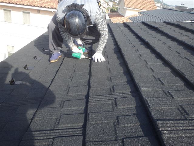 諏訪市で雨漏りした金属屋根をカバー工法で天然石コーティングジンカリウム鋼板へ