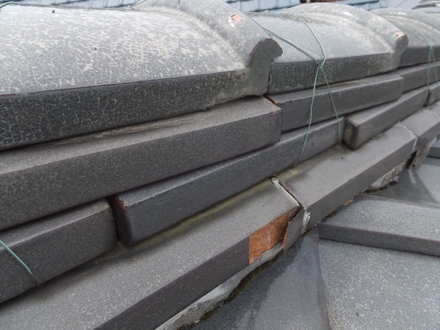 剥がれた漆喰だけではなく、のし瓦にも多数の損傷が見られます。