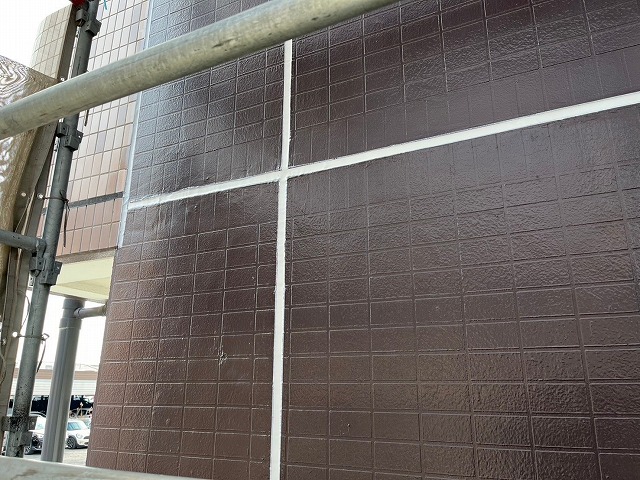 日進市のアパートで外壁塗装前のシーリング工事、半面づつ工事を進行した事例
