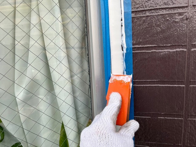 シーリングの打設は一見簡単そうに見えますが、補填しすぎると養生からはみ出し、少なすぎると隙間を埋められません。