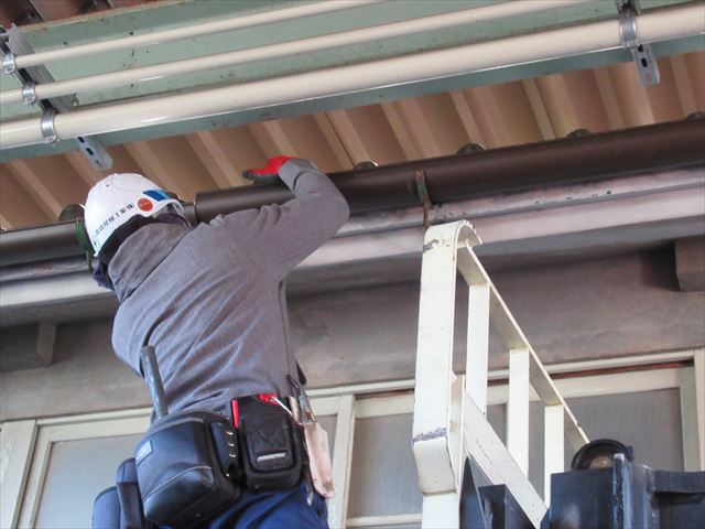 石巻市清水町│倉庫の錆びた鉄製雨樋の交換工事