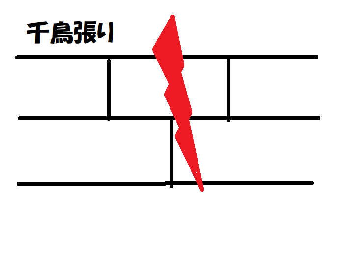 一方、『千鳥張り』だと互い違いに合板が張られているので