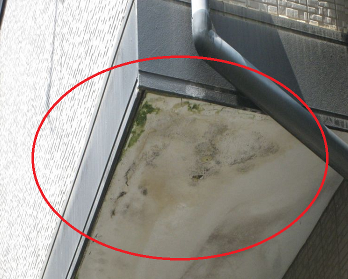 独立してるベランダの場合、笠木部分から下に回ってベランダ下に雨染みができます。