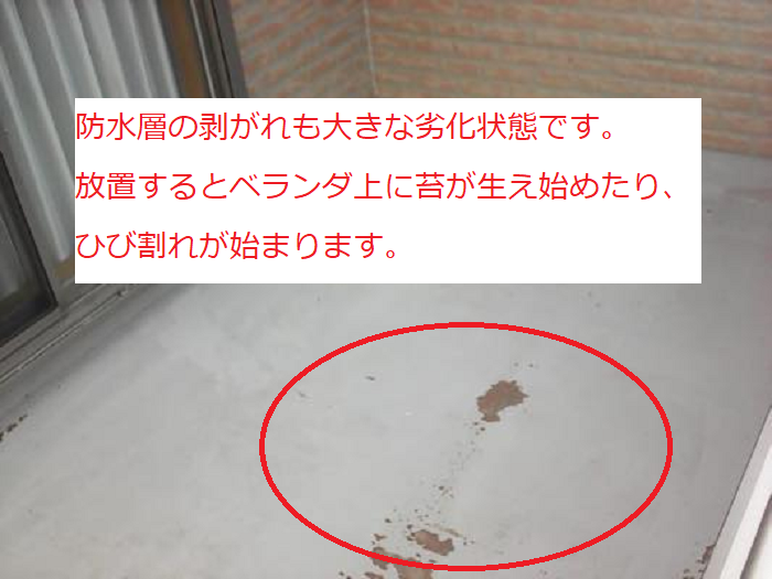ベランダは、表面上ではあまり劣化を感じることはありませんが、