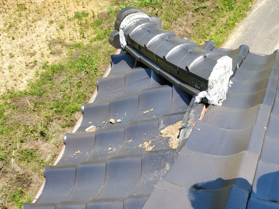 飯田市にて隅棟瓦の補修工事、積み直し工事を行います①