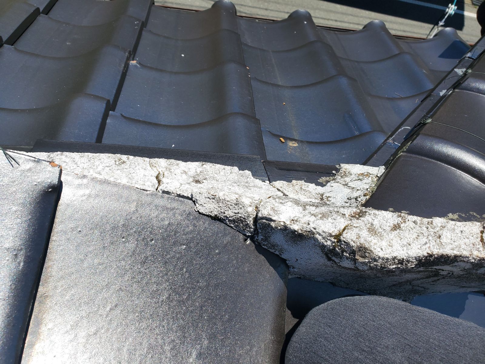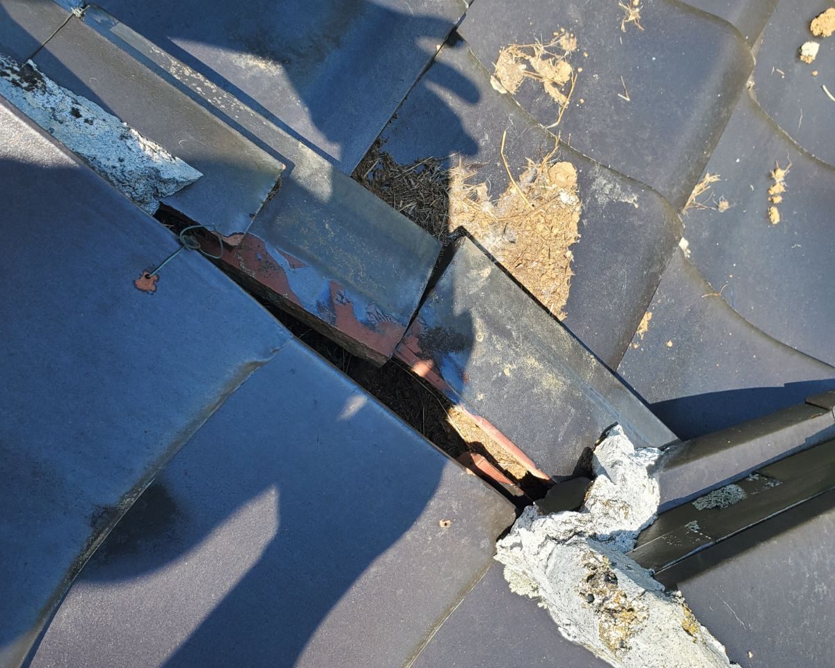 お客様のご心配された通り、漆喰は元より、瓦のズレも見られます。 瓦の屋根では、瓦を接着し固定するために、漆喰が使われています。ですので、この漆喰が傷んでしまうと瓦と瓦の間に隙間ができてしまい、放っておくと雨漏りにも繋がってしまいます。関連記事