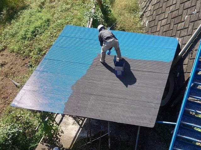 しっかり下地処理もしているので、下塗りを終えただけでも美しい屋根になっています。