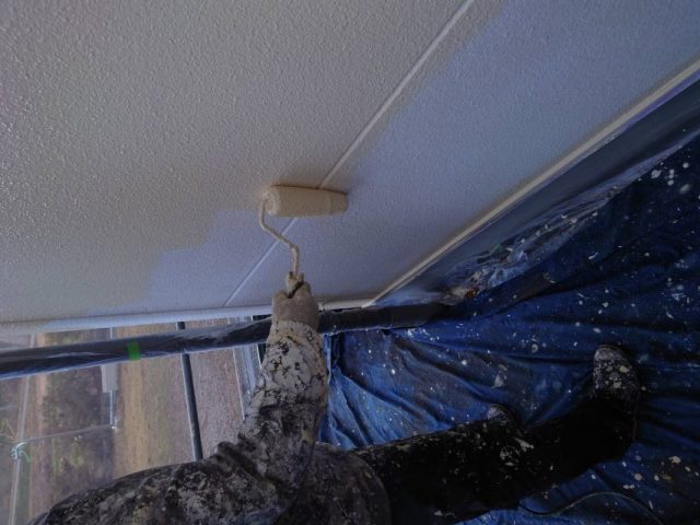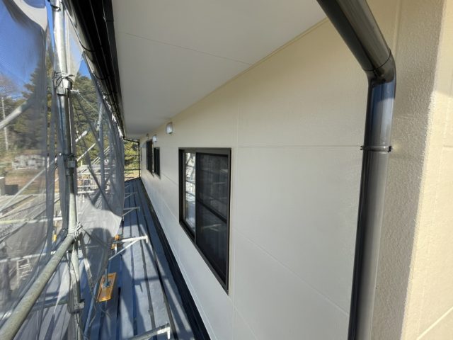 外壁1回目を終えて、外壁塗装の上塗り2回目を塗り終えたところです。