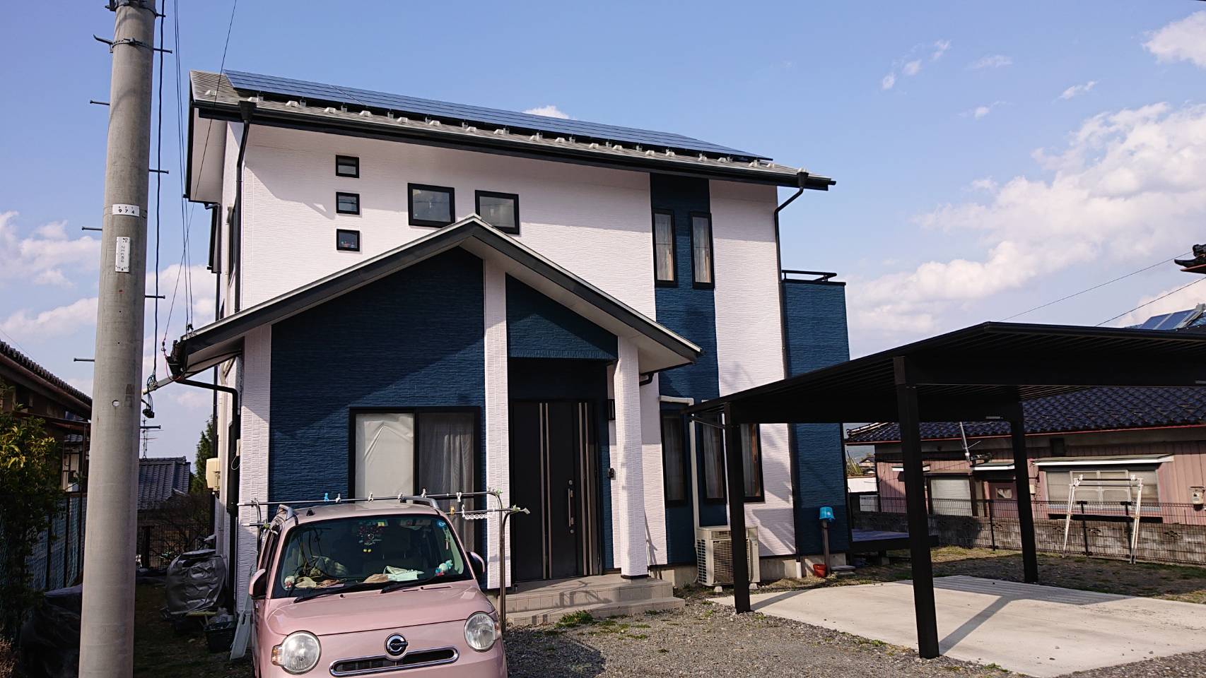 ホーム > 駒ケ根市 外壁と屋根の塗装工事が完成!ストライプの二色分け