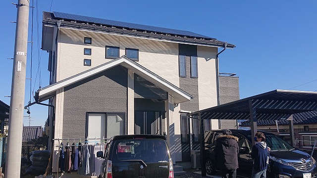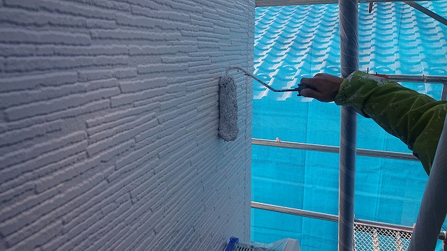今回外壁の上塗り作業を行い完成に向かって行きます。