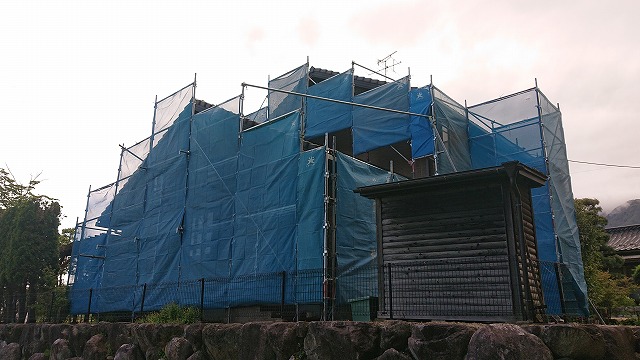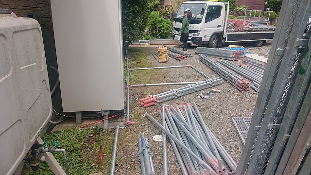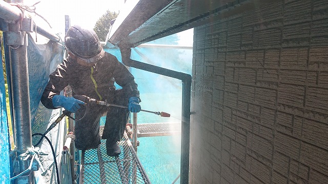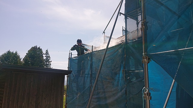 上伊那郡飯島町 外壁塗装工事開始!足場作業と洗浄作業