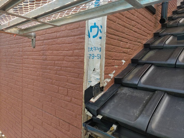 腐食の原因となっていたベランダと瓦の隙間は、板金職人によって補修しました。