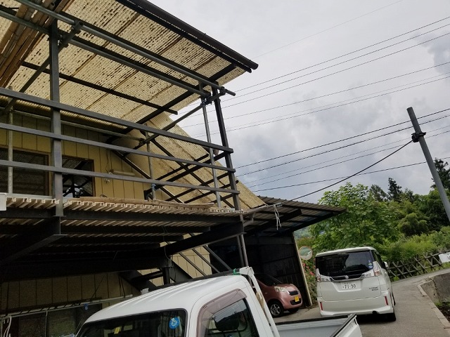 今回は飯田市下久堅にてガラス繊維の入った波板ポリカーボネートの交換工事をしました。