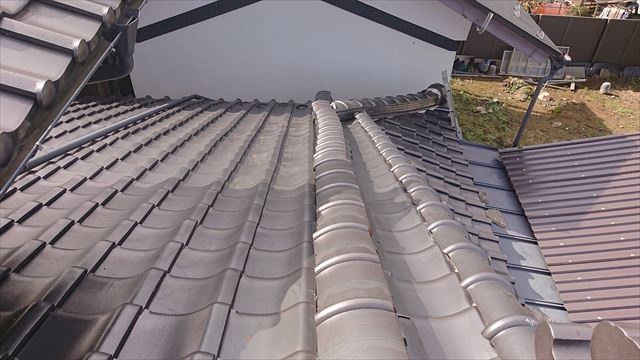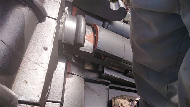 銅線が切れて、隙間が空いてしまった棟瓦です。