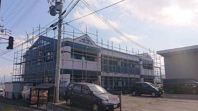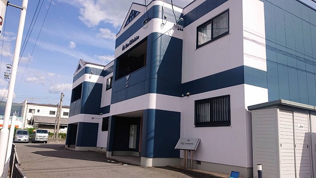 長野県塩尻市広丘吉田にて行っているアパート外壁塗装現場がいよいよ終わりを迎えます。前回中塗りまで行っていましたが、ついに上塗り作業を開始し、工事が完成に近づきました!!
