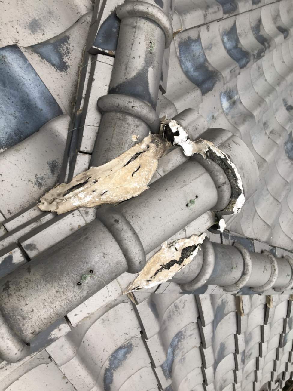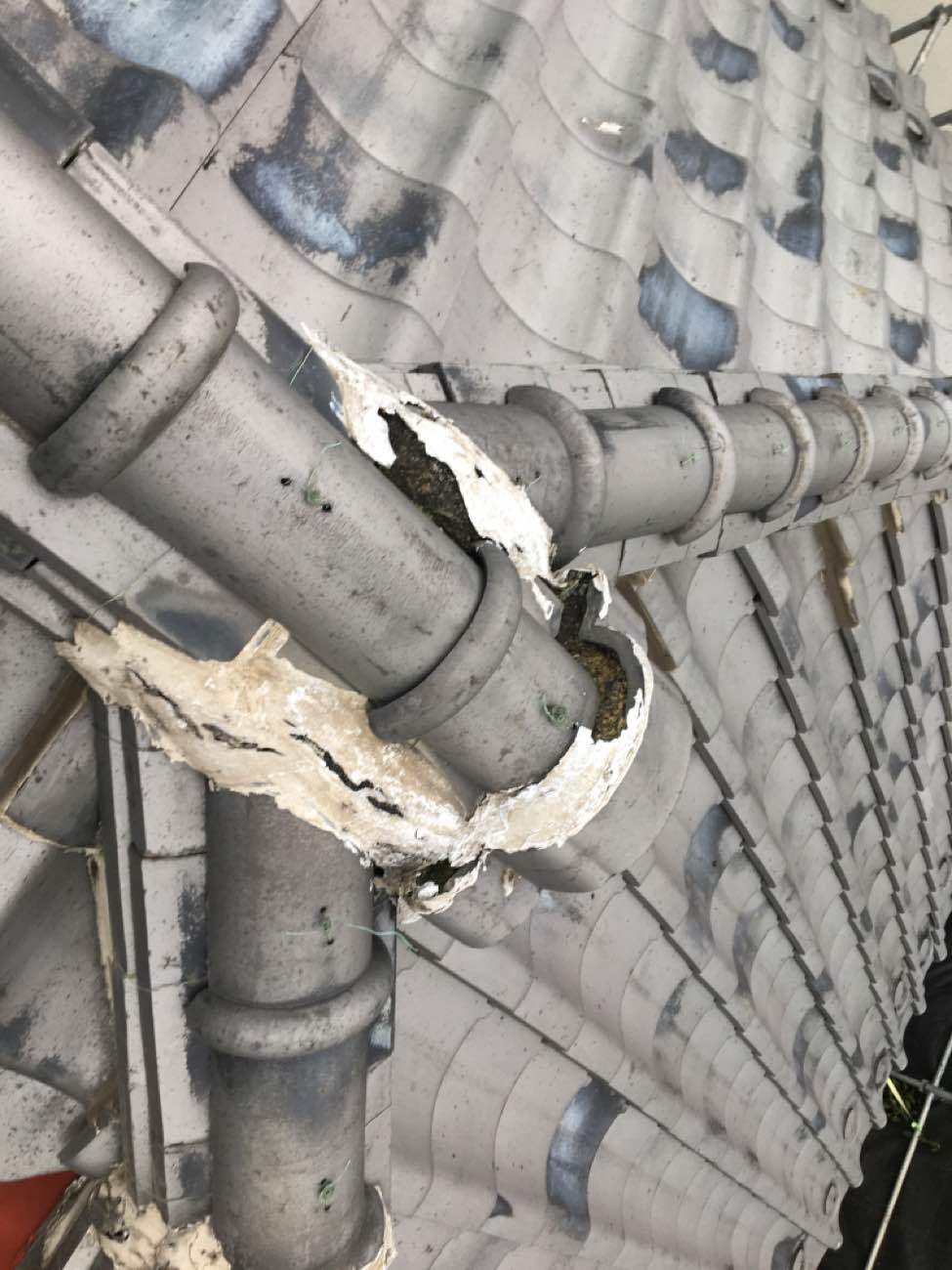 いぶし瓦は問題なかったのですが、漆喰が剥がれてしまっていました。