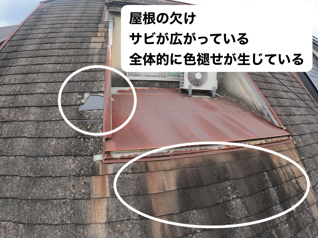 それぞれの屋根材に、以下のような劣化症状が確認されました。