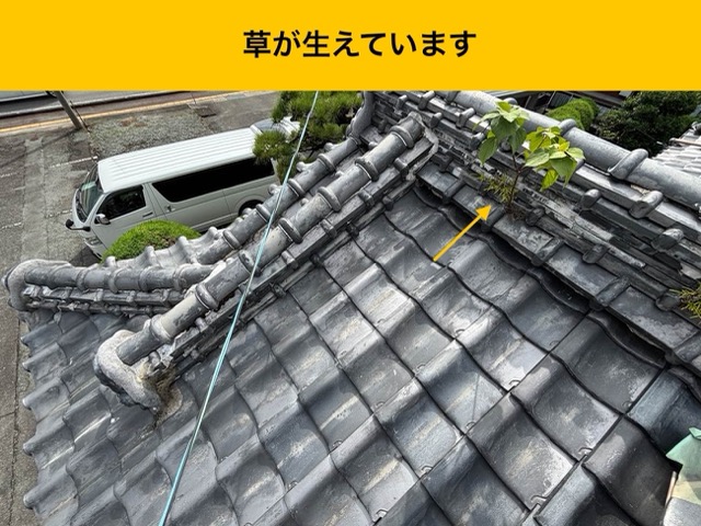 ホーム > 筑紫野市の方へご紹介事例|草が生えた瓦屋根の深刻な劣化を軽量…