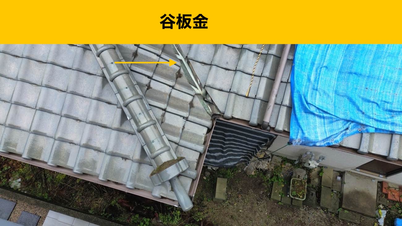 谷板金は、屋根の谷部分に設置され、雨水を一箇所に集めて排水する役割を担っています。