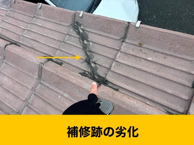 | 原因 | 経年劣化、瓦の割れ、ズレ。過去の補修跡の再劣化 |