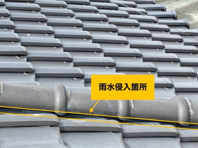 棟瓦の隙間瓦屋根の頂上部分である棟に隙間が生じていました。