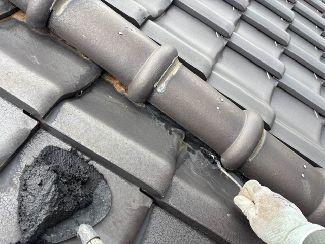 今回は、雨漏りの原因となっていた破損瓦の交換と、棟部分の補修を行いました。