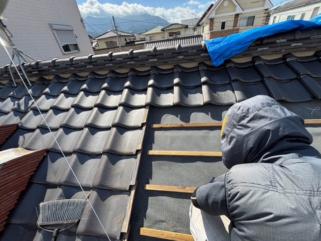 葺き直し工事は、既存の瓦を一度取り外して、下地や防水シートを補修・交換し、同じ瓦を葺き直す工事のことです。