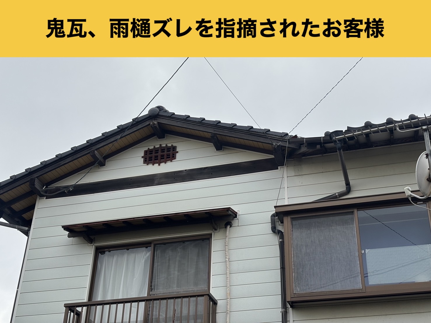 「近くで工事をしていて、お宅の屋根の鬼瓦がずれているのが見えた」