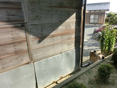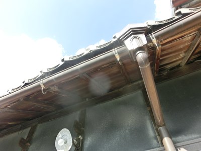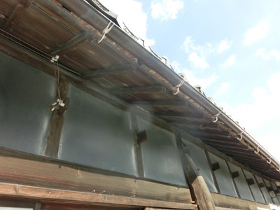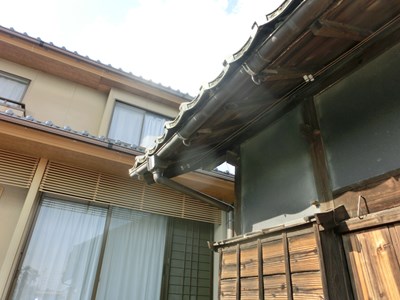 四日市市いなべ市古民家雪被害による雨樋と瓦部分歪み