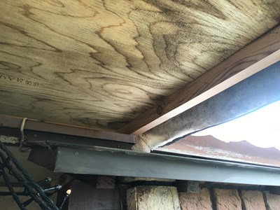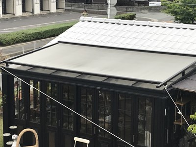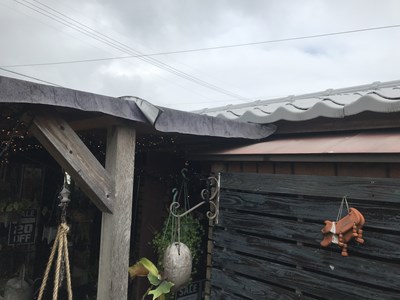 雨除けの庇部分は、防水シートが被せてあるのみだったので、こちらも屋根をこれからご提案させていただこうと思います。