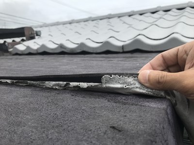 建物の継目で雨漏りが酷くなってきているとご連絡いただき、本日は現場を確認に訪問させていただきました。