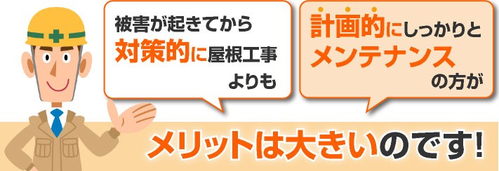 どうぞ安心してでご相談下さい。屋根が傷んでしまう前に、早期発見・早期修理で、