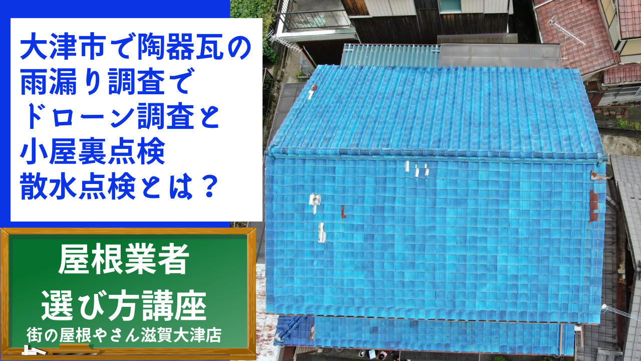 大津市で陶器瓦の雨漏り調査でドローン調査と小屋裏点検 散水点検とは?