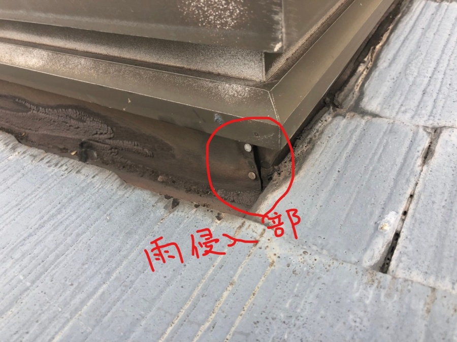 天窓部分板金の剥がれた部分より雨水が侵入してきていました。