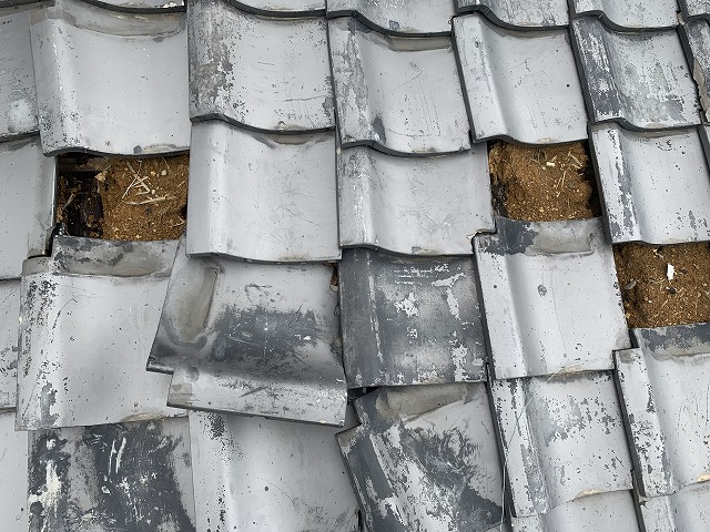 和瓦屋根のお家で瓦が落ちてきていると