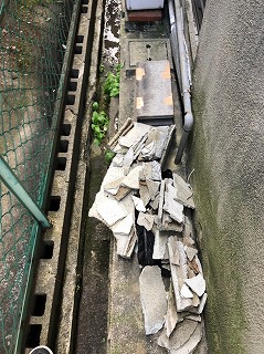 ベランダの表面の壁材が落ちている様子です。