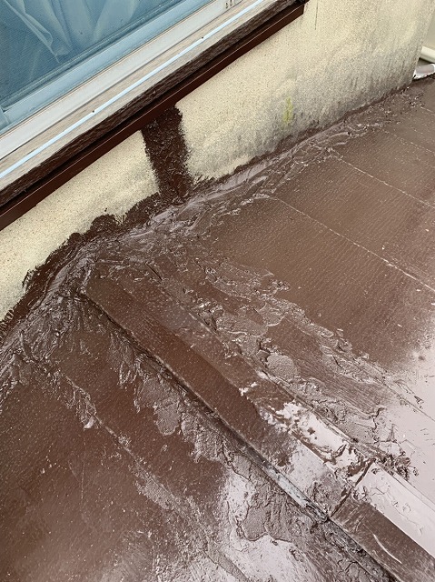 確かに一時的には雨漏りを防げていましたが、すでに剥がれが始まっており、再び雨漏りするリスクが高い状態です。