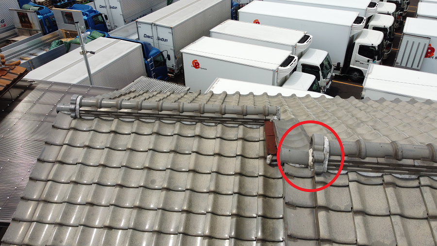 何箇所か瓦の色が違う部分があります。これは以前瓦の差し替えをされた部分です。