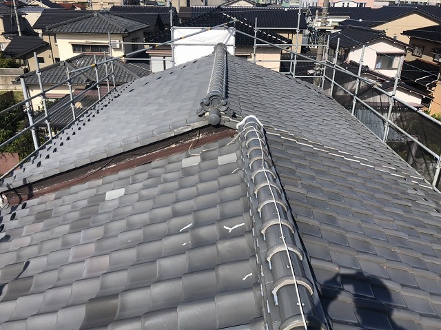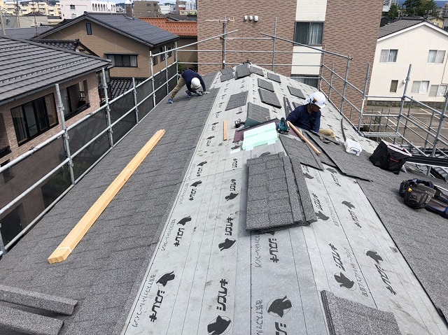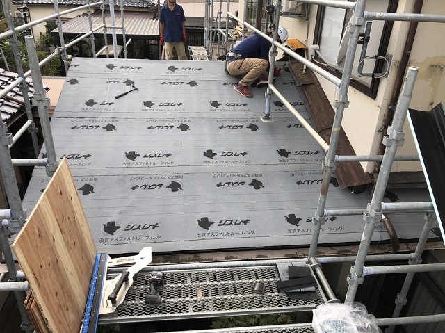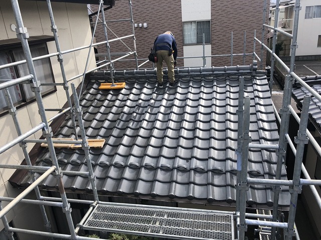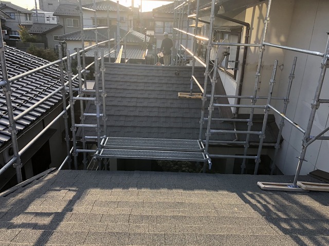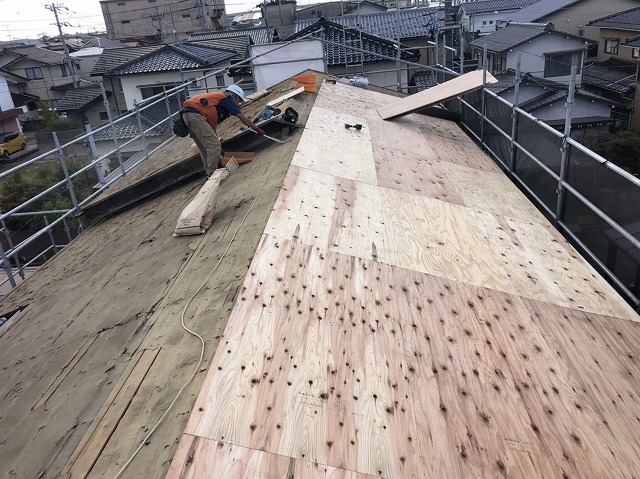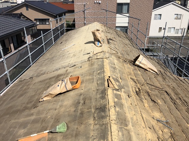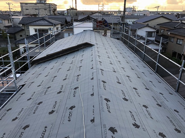 金沢市、屋根葺き替え工事 (瓦屋根→石付き板金屋根)