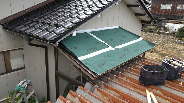 ホーム > 野々市、棟瓦積み直し、玄関ポーチ葺き替え【ガルバリウム鋼板】…