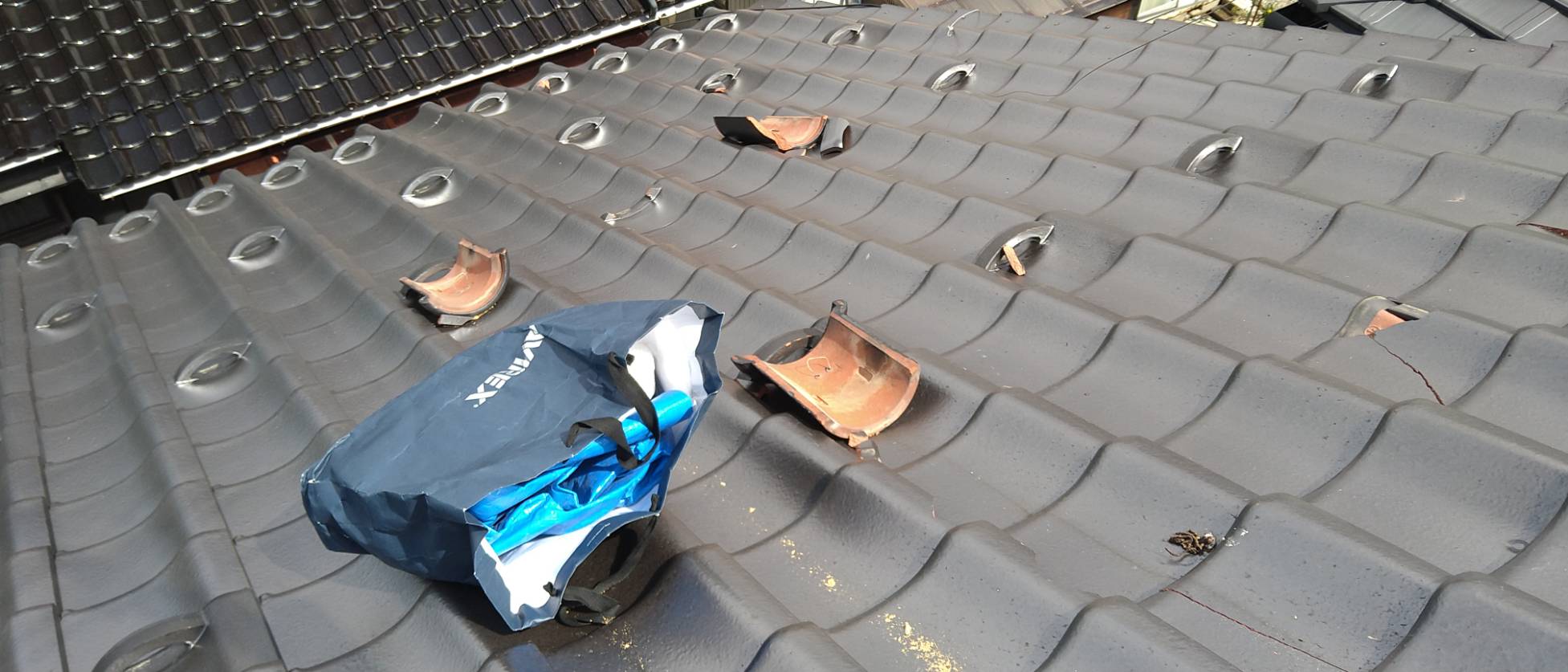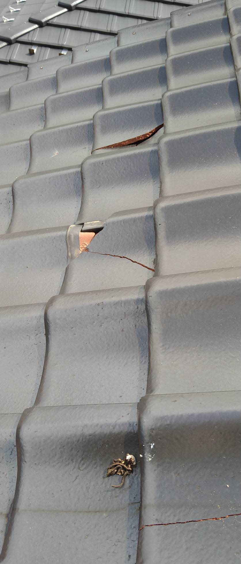 瓦がめくりあがったり、雨樋が飛ばされたり、板金が捲れるなど被害が多かったです(>_<)