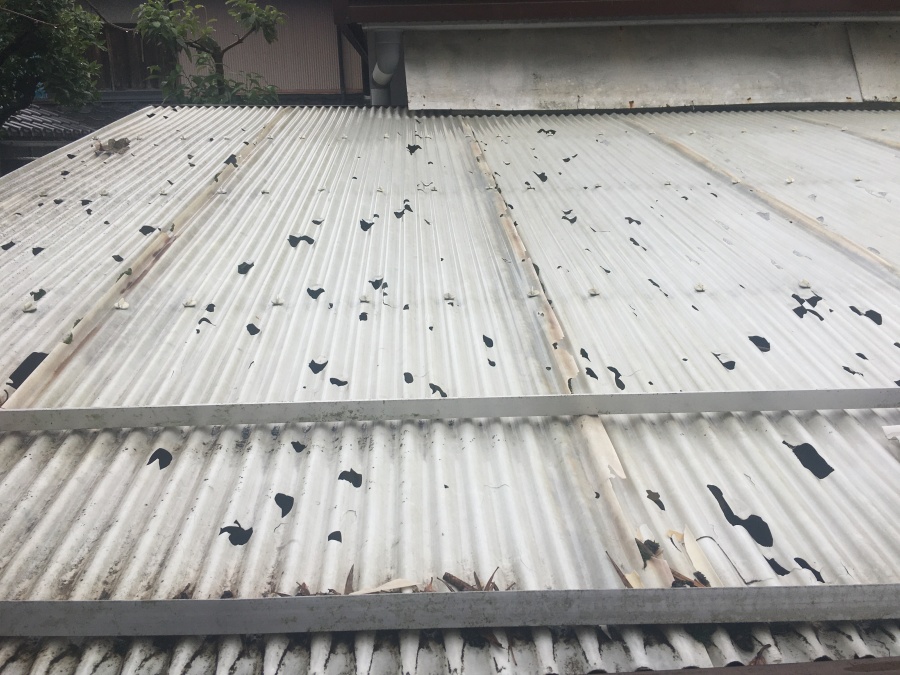 豊川市で雹(ひょう)の影響で穴の空いた波板取替の現地調査へ行ってきました
