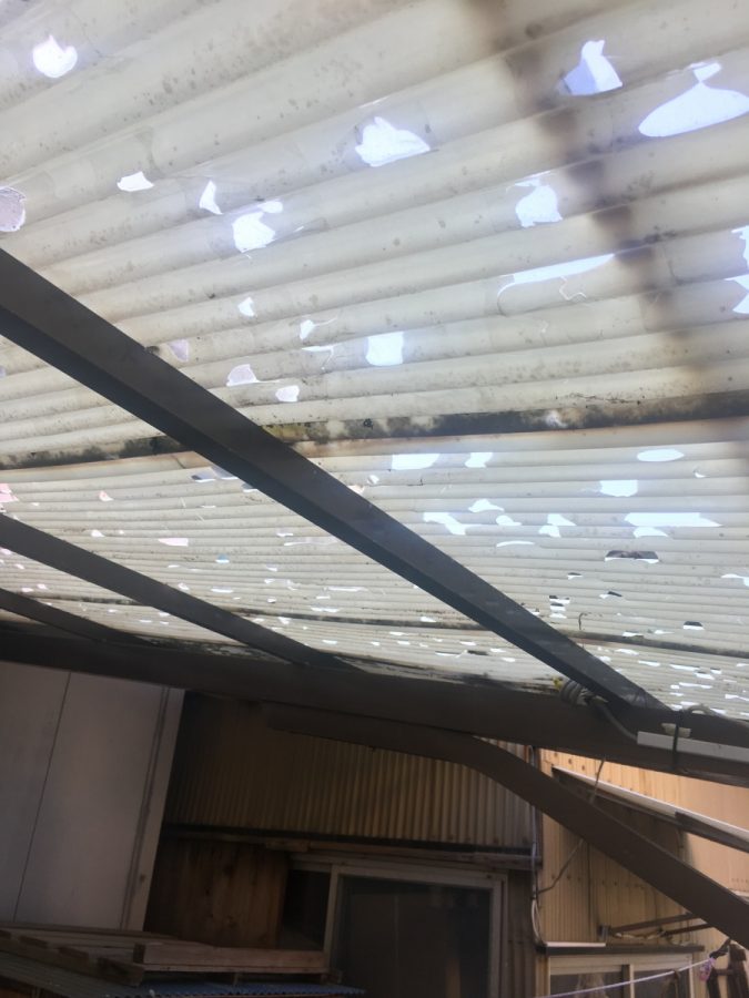 ホーム > 豊川市で雹(ひょう)の影響で穴の空いた波板取替の現地調査へ行…