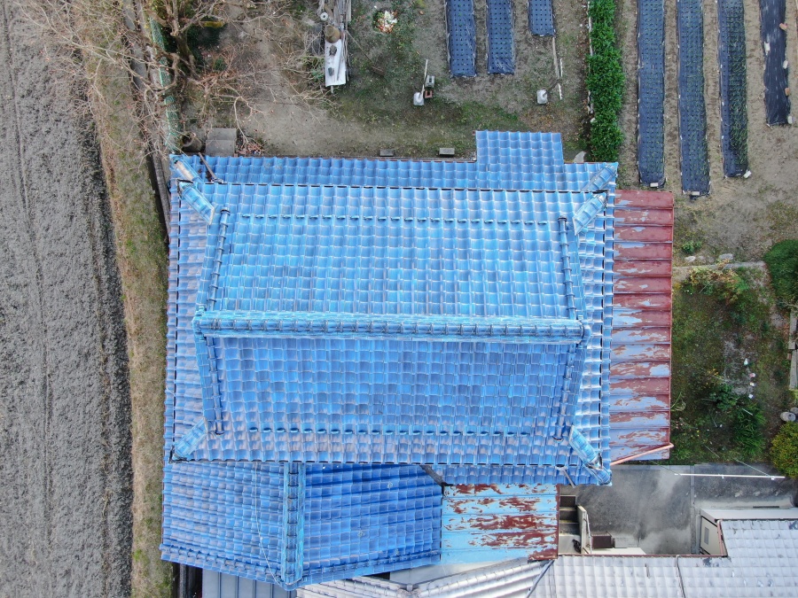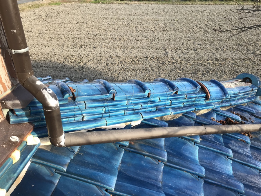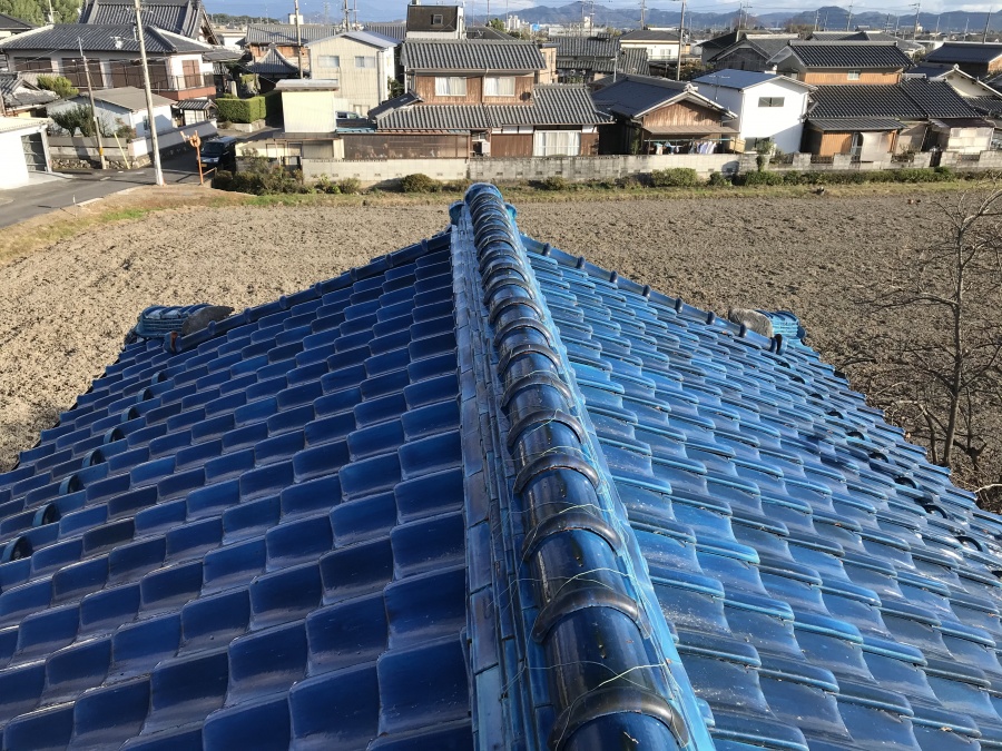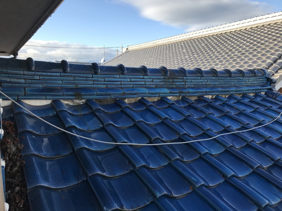 ホーム > 草津市にある青色の釉薬瓦屋根の棟点検を行いました