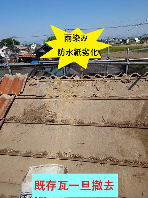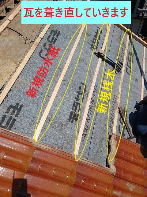 一旦既存瓦を撤去して、防水紙や野地板などの下地を補修して、瓦を葺き直す瓦工事!