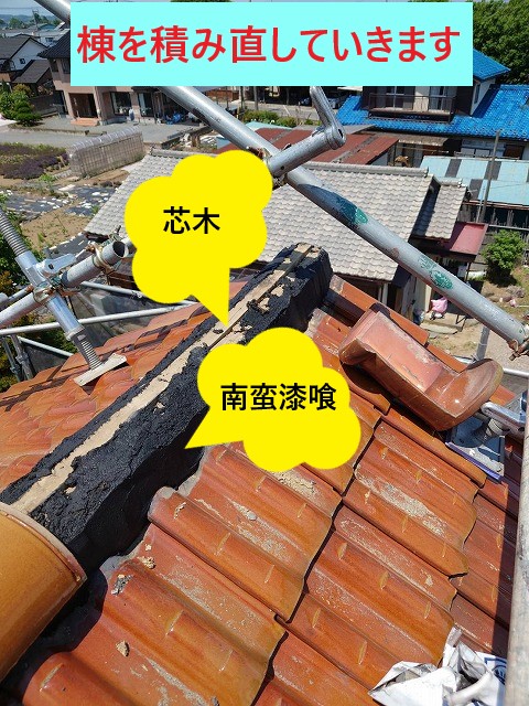 漆喰の崩れ、剝がれが酷い場合に行うのが、棟積み直し工事です🏡